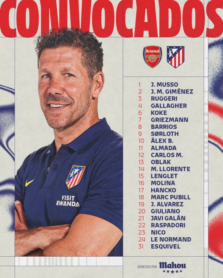 在前锋线上,球队的攻击组合有格列兹曼、瑟尔洛特、阿尔马达、阿尔瓦雷斯、朱利亚诺-西蒙尼、拉斯帕多里和尼古拉斯-冈萨雷斯。格列兹曼作为球队的核心,能否在这场比赛中找到进攻的节奏,将对比赛的结果产生重要影响。此外,阿尔瓦雷斯的速度和突破能力也将给阿森纳的防线带来很大压力。