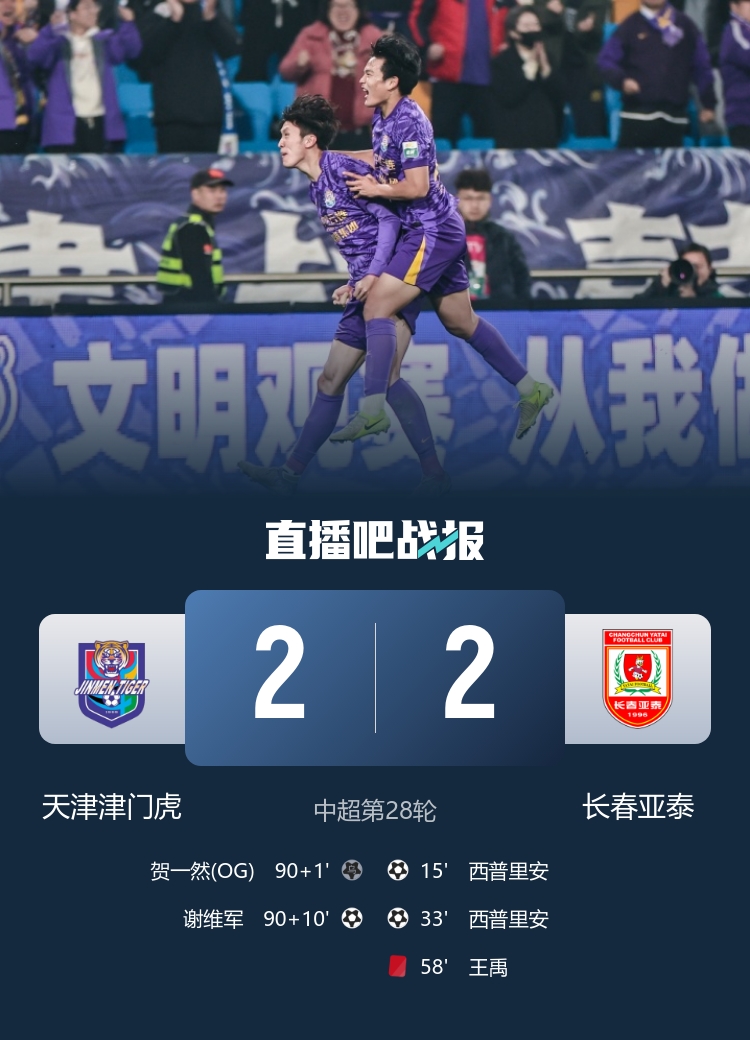 整场比赛不仅充满悬念,各个球员的拼搏精神也让人感到振奋。同时,长春亚泰在艰难的情况下仍然努力争取分数,而天津津门虎则展现了强烈的反弹能力。经过这场比赛,长春亚泰目前积累了19分,仍然处于降级区域,而天津津门虎以44分高居第6名,显示了他们在赛季中的较强竞争力。