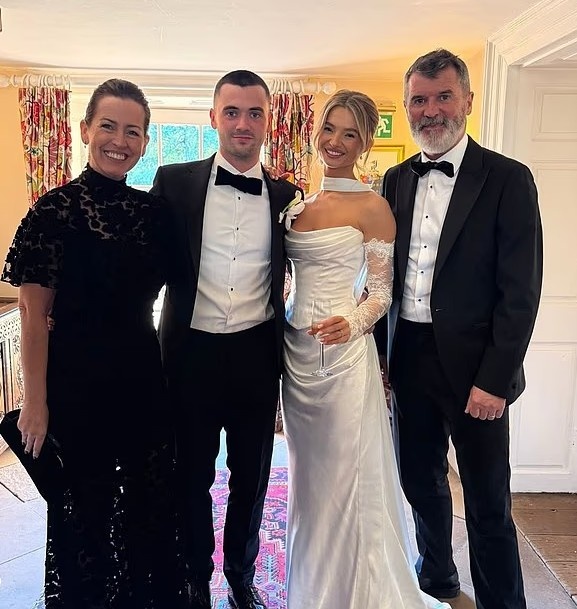 10月30日讯 据《太阳报》报道,曼联传奇球员罗伊-基恩的儿子艾丹于上周末举行了婚礼,现场气氛喜庆。基恩在社交平台上发布了一张家庭合影,照片中他身穿燕尾服,与妻子特蕾莎及新婚夫妇一同亮相。