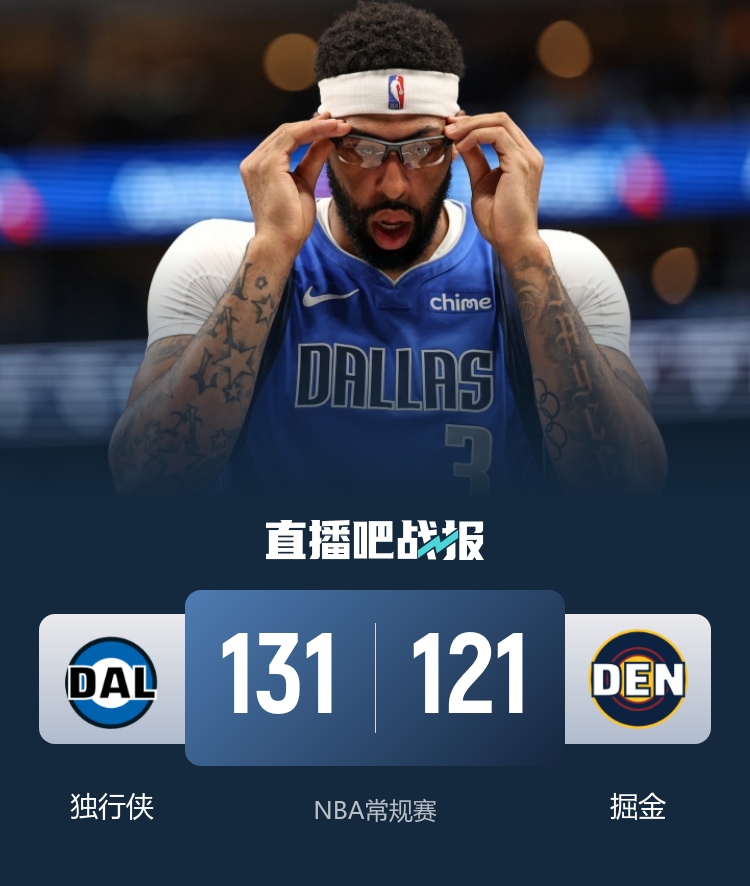 从双方的表现来看,掘金的约基奇全场砍下29分、20个篮板和13次助攻,状态依然火热。斯潘塞·琼斯也贡献了28分和5个篮板,其他球员中,小哈达威和穆雷分别得到了13分和10分,虽然团队努力,但最终未能逆转局势。另方面,独行侠的戴维斯表现尤为抢眼,砍下32分、13个篮板和4次助攻,内姆哈德同样不甘示弱,添上了28分与10次助攻,助力球队在这个紧张的比赛中取得胜利。