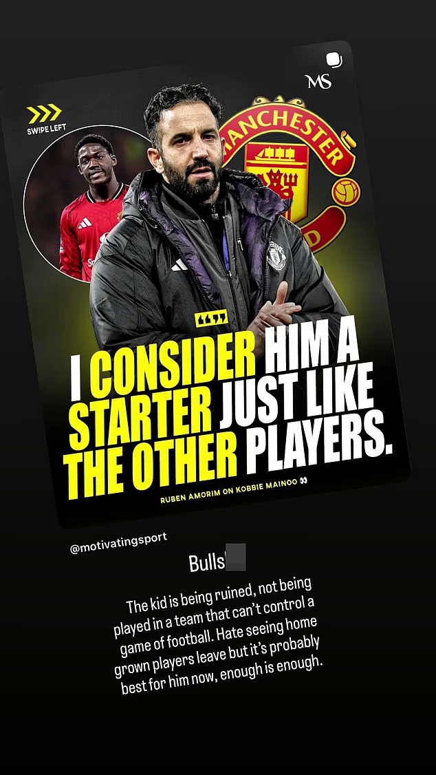 根据《每日邮报》的报道,前曼联中场传奇斯科尔斯在社交媒体上对年轻球员梅努的现状表达了不满,认为他在球队中得不到足够的机会,或许是离开的时刻到了。