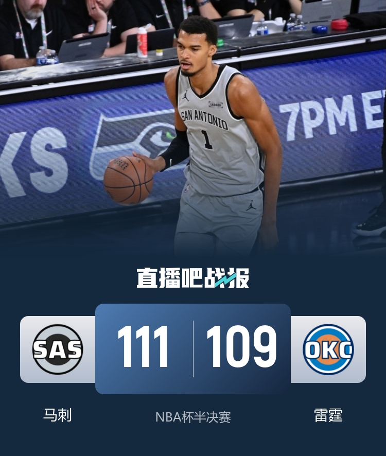 下半场开始后,马刺迅速发力,送出18-9的攻势,成功逆转比分。尽管雷霆在随后短暂反超,但场面上处于被动局面,双方交替领先,分差始终保持在一球之内。决胜时刻,马刺的瓦塞尔与文班亚马联手得分,帮助球队在临近结束时取得4分的优势,从而奠定胜局。最终,马刺以战胜雷霆,终结了雷霆的16连胜,并成功晋级NBA杯决赛,对手是尼克斯。
