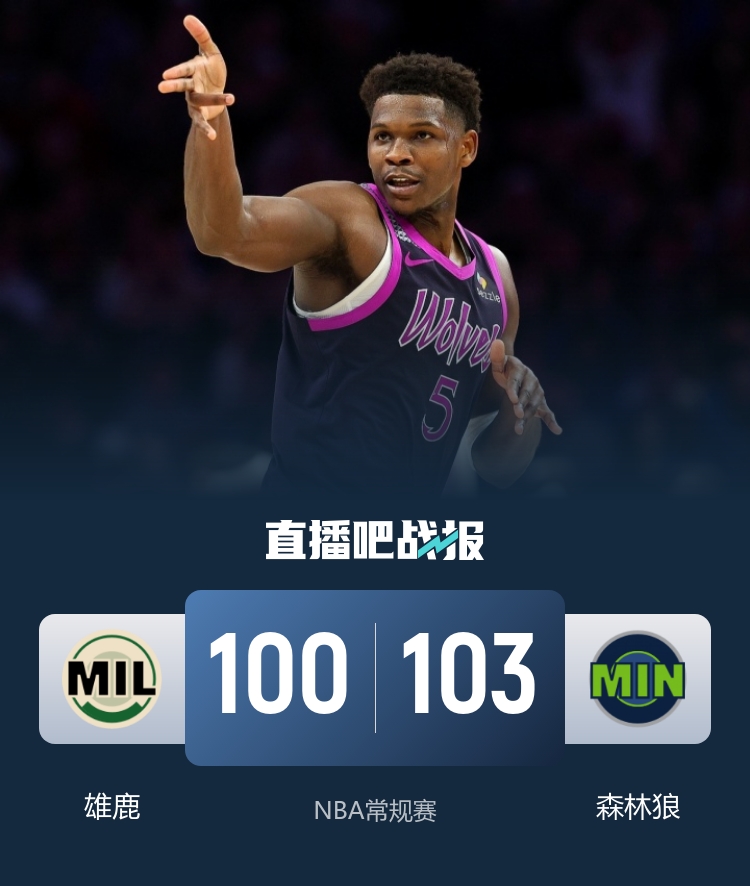 12月22日,NBA常规赛中,森林狼队对阵雄鹿队。森林狼在上一场中击败了雷霆,状态良好。而雄鹿则经历了两连败的低谷,今天缺少了字母哥和贝兰热的助阵,显然挑战不小。
