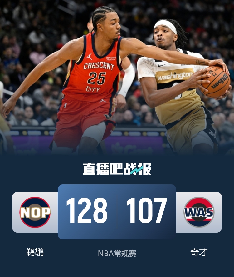 下半场展开,锡安与墨菲继续发威,轮番贡献得分,鹈鹕的领先优势一度扩大到20分。不过,奇才并未放弃,他们稳住场面,通过反击开始追分。第四节时,奇才在内外结合的攻击下将差距缩小至10分。可惜,当锡安重回赛场,依旧进入强势状态,他多次制造犯规,稳定住鹈鹕的局势,比分再次被拉开。最终,鹈鹕以128-107轻松战胜奇才,结束了九连败的尴尬,奇才则遭遇两连败。