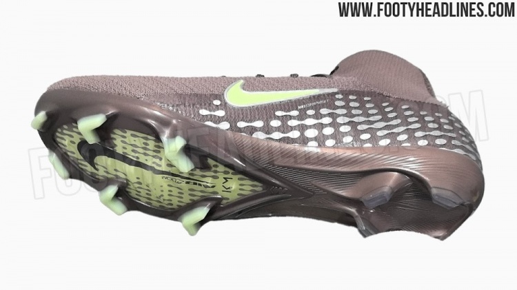 这款球鞋的配色方案极具特色,以“梅子日食/金属银”为主色调,并通过酸橙绿色的Swoosh标志和鞋底进行装点,整体视觉效果十分吸引眼球。鞋身侧面和后跟处的银色胶囊状图形纹理增添了时尚感,而鞋舌上的“KM”个人标识则显得格外醒目,体现了姆巴佩的个性与风格。