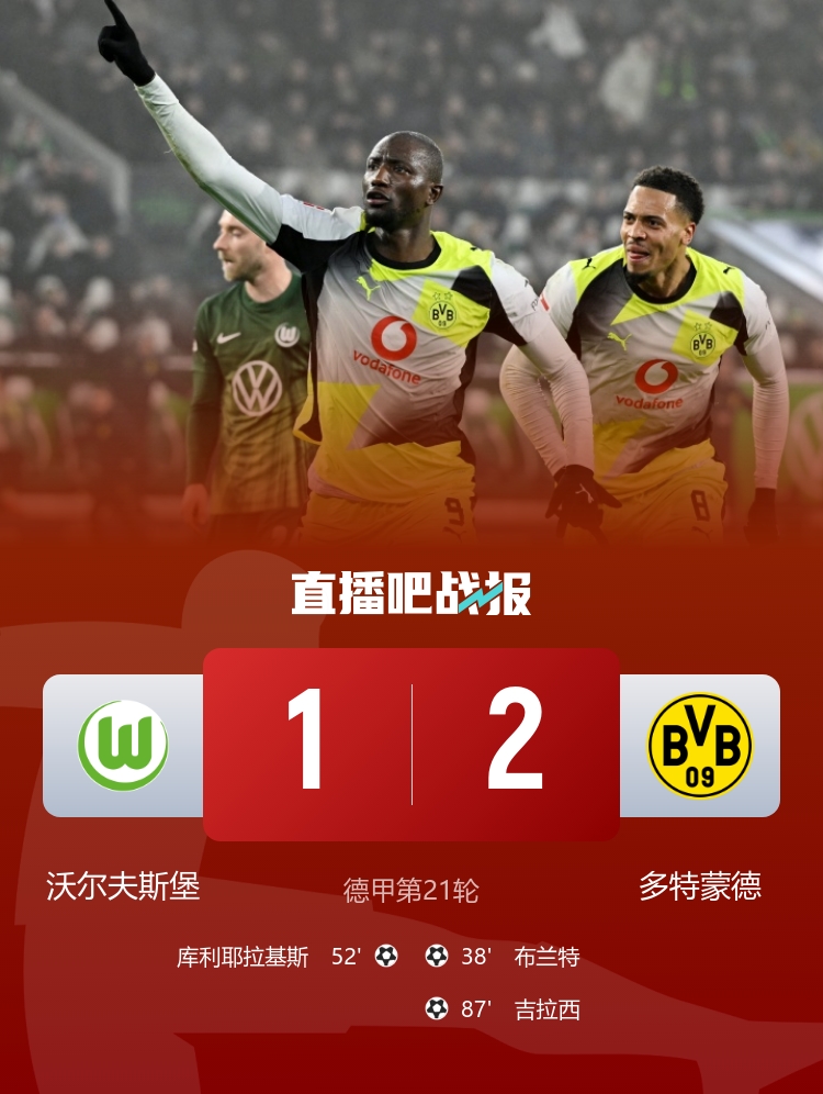 2月6日晚22:30,德甲联赛第21轮的比赛在大众汽车竞技场展开,沃尔夫斯堡迎战多特蒙德。比赛中经历了一系列的精彩瞬间,最终多特蒙德以2-1战胜沃尔夫斯堡。