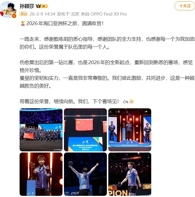 赛后,孙颖莎在社交媒体上分享了她的感受,言辞真挚,深情款款。她首先感谢了教练团队的悉心指导及全体工作人员的支持,认为这份光荣的奖杯不仅属于自己,更是整个团队共同努力的结果。她的谦卑之心让人感受到,冠军的背后是无数人的辛勤付出。