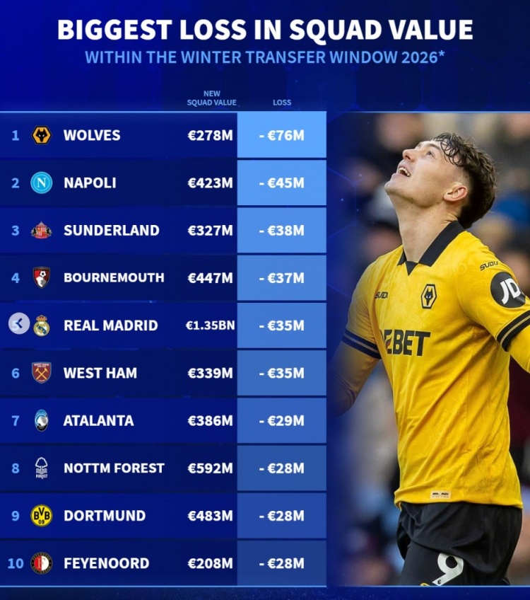2月10日,随着各大联赛冬季转会窗口的结束,各支球队在这段时间的资产变化引起了广泛关注。根据《转会市场》的最新统计,狼队在冬季转会后成为了身价缩水幅度最大的球队,显示出他们在转会操作中的不尽如人意。