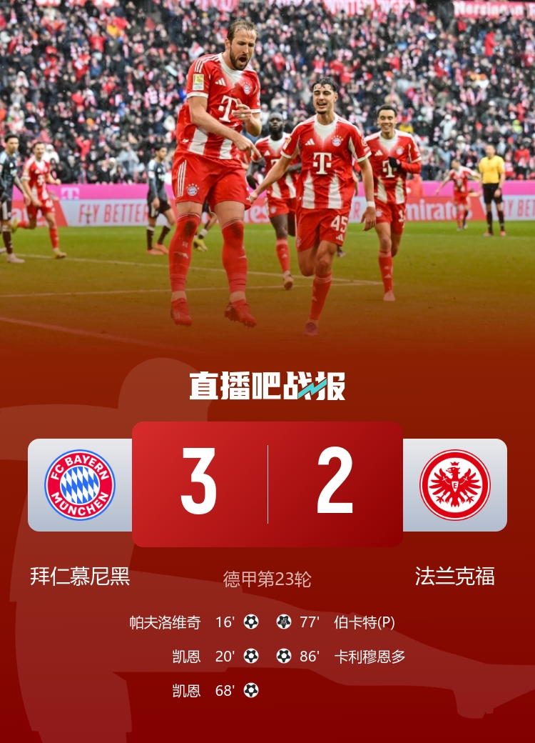 尽管几次失误,但最后以3-2收尾,拜仁似乎对这场胜利无比庆幸,然而,对于法兰克福来说,他们的表现实在令人失望至极。