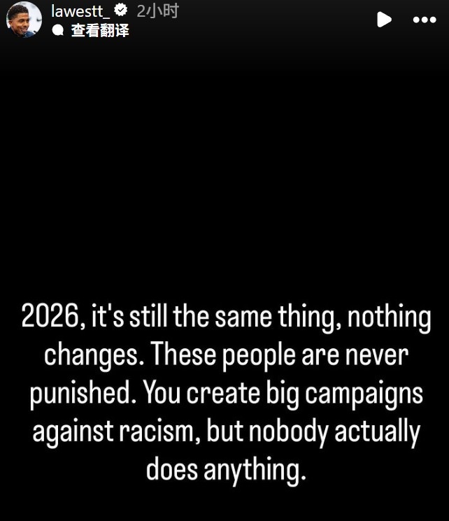 其实,这样的遭遇并不是福法纳第一次遭遇。他对此感到无奈,表示:“到了2026年,情况依然没有改变。这些施暴者总是逍遥法外。尽管大家在发起反种族主义运动,但实际上没有任何实质性改变。”