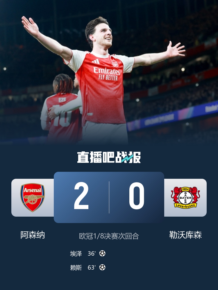 在3月18日进行的欧冠1/8决赛次回合中,阿森纳在主场酋长球场迎战勒沃库森,以2-0获胜,凭借总比分3-1顺利晋级八强,将与葡萄牙体育对阵。首回合两队的交锋以1-1平局告终,今天的较量因此显得尤为关键。