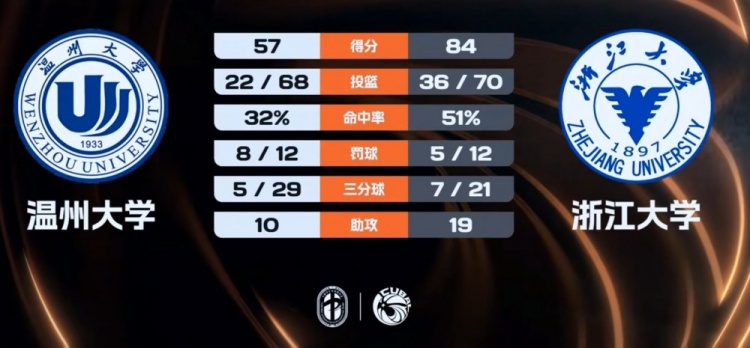 在个人表现方面,浙江大学的丁小峰全场拿下24分7篮板,成为球队的核心球员;袁海洋贡献了12分4篮板,而刘凯博则以11分6篮板助力球队。温州大学方面,吴义皓表现不俗,攻下16分,於景康紧随其后,收获15分5篮板。